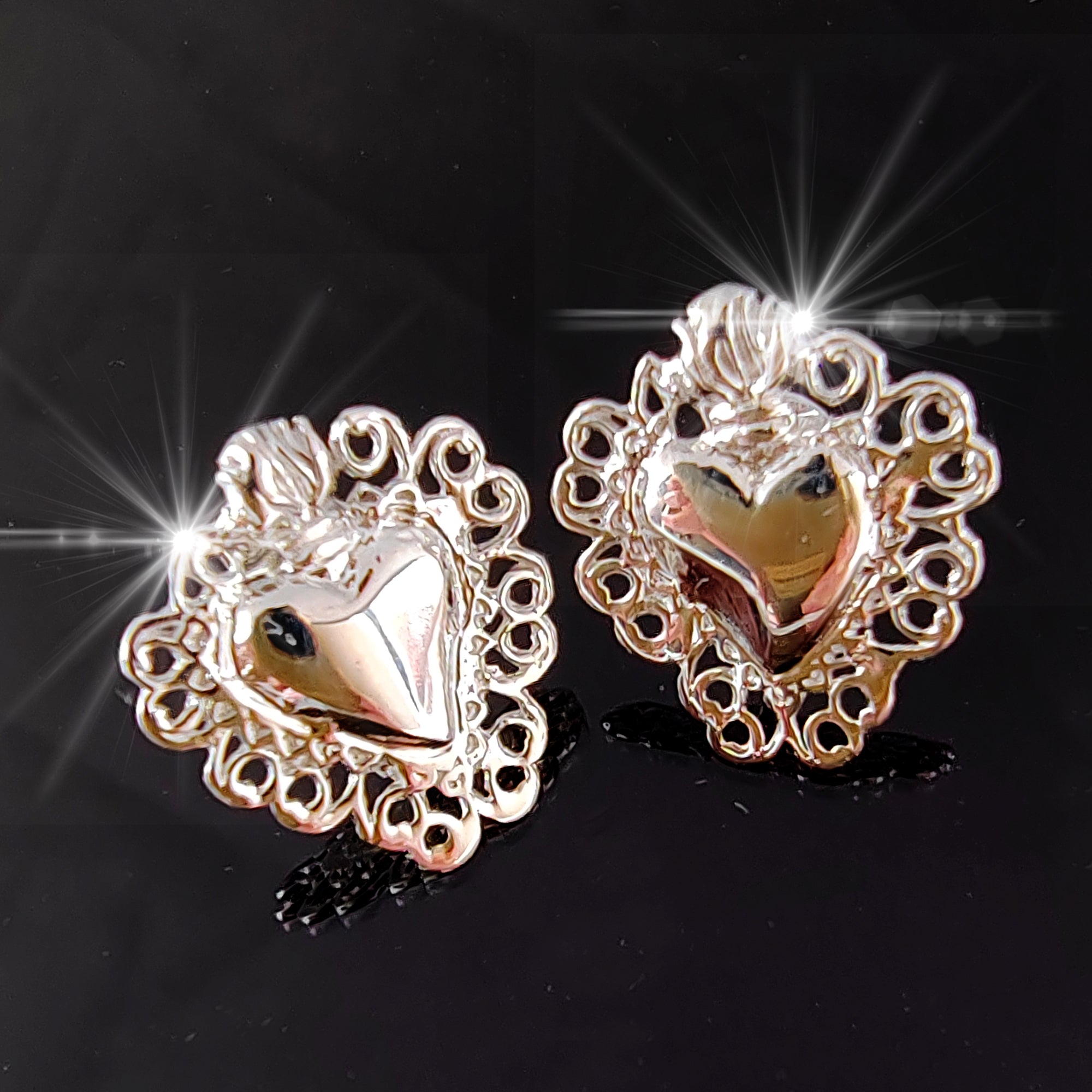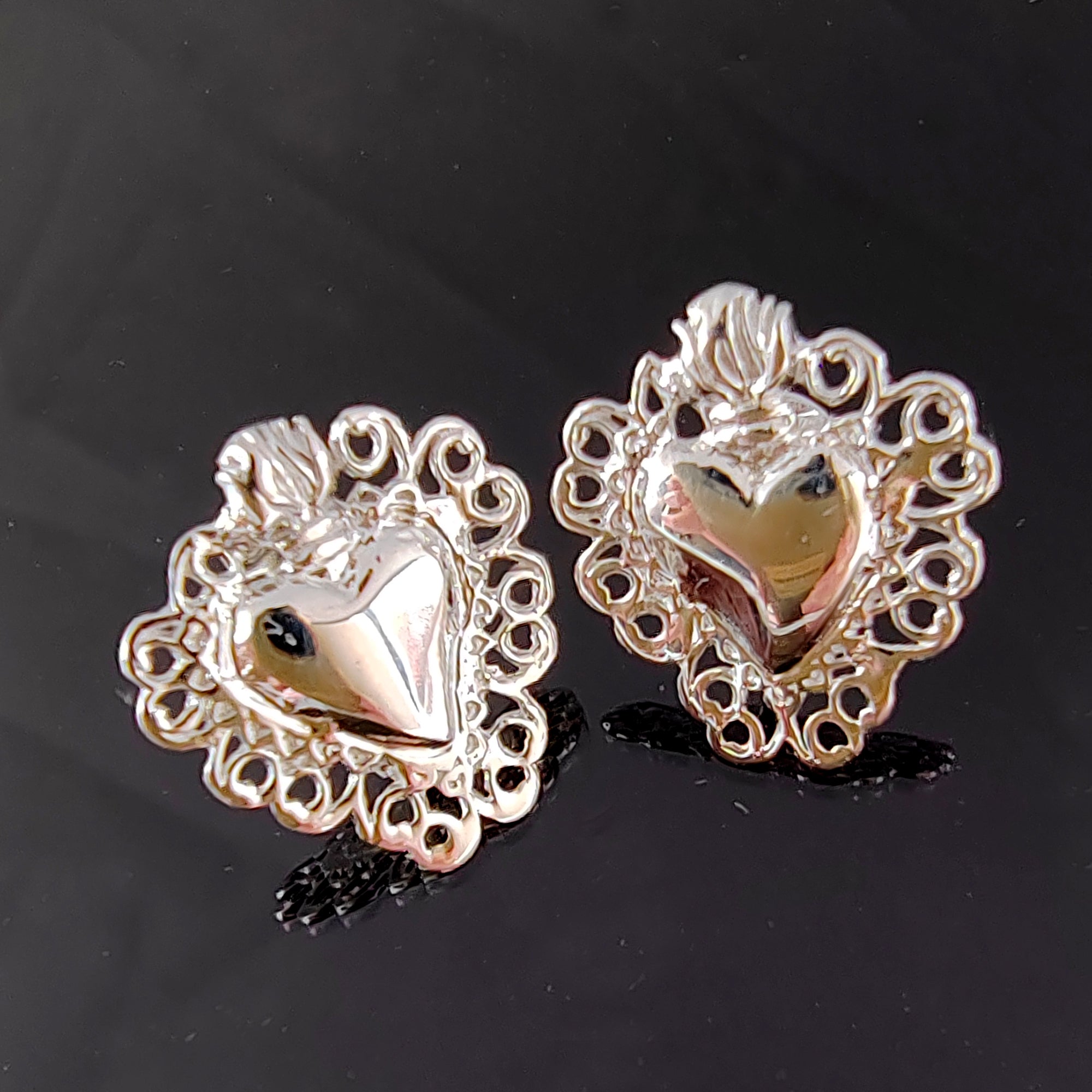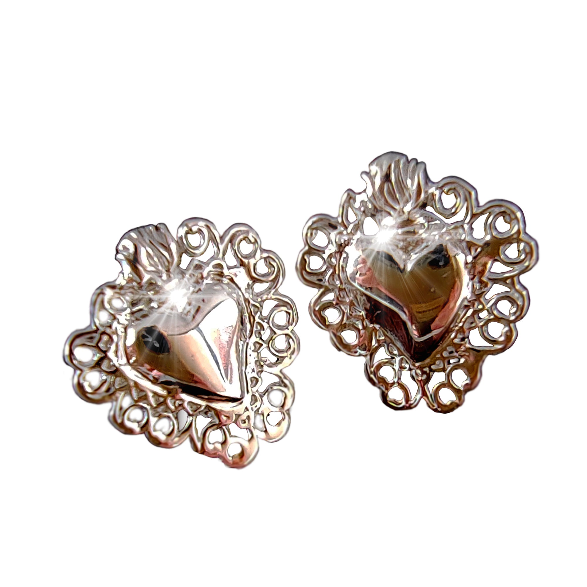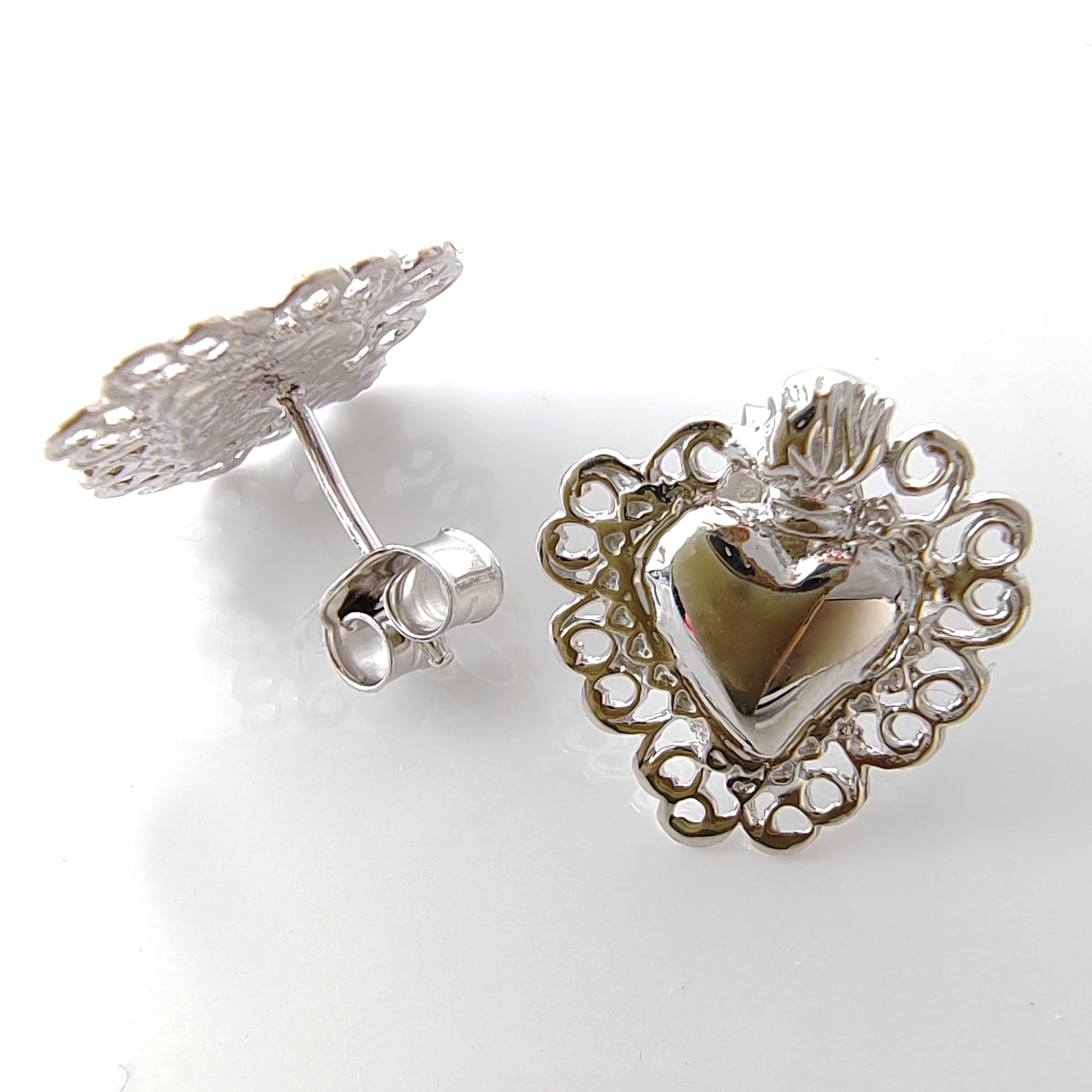 Orecchini Sacro Cuore in Argento 925, Gioielli Religiosi Donna, Ex Voto Vintage a Lobo